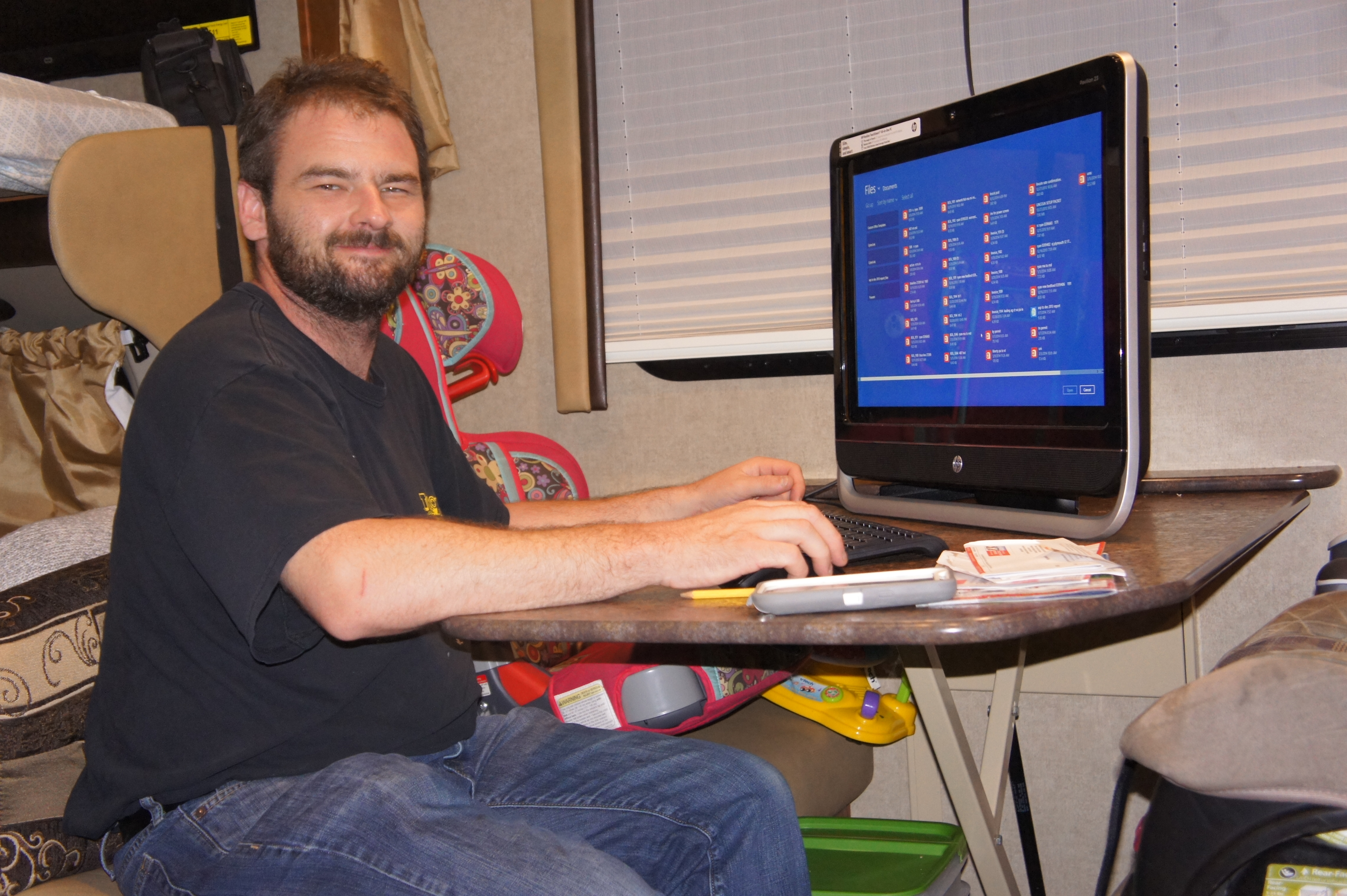 Darryl’s morning is not as enjoyable; keeping 5 kids occupied in a rainy RV while packing up and working. He is sharpening his multi-tasking abilities, I’m sure.