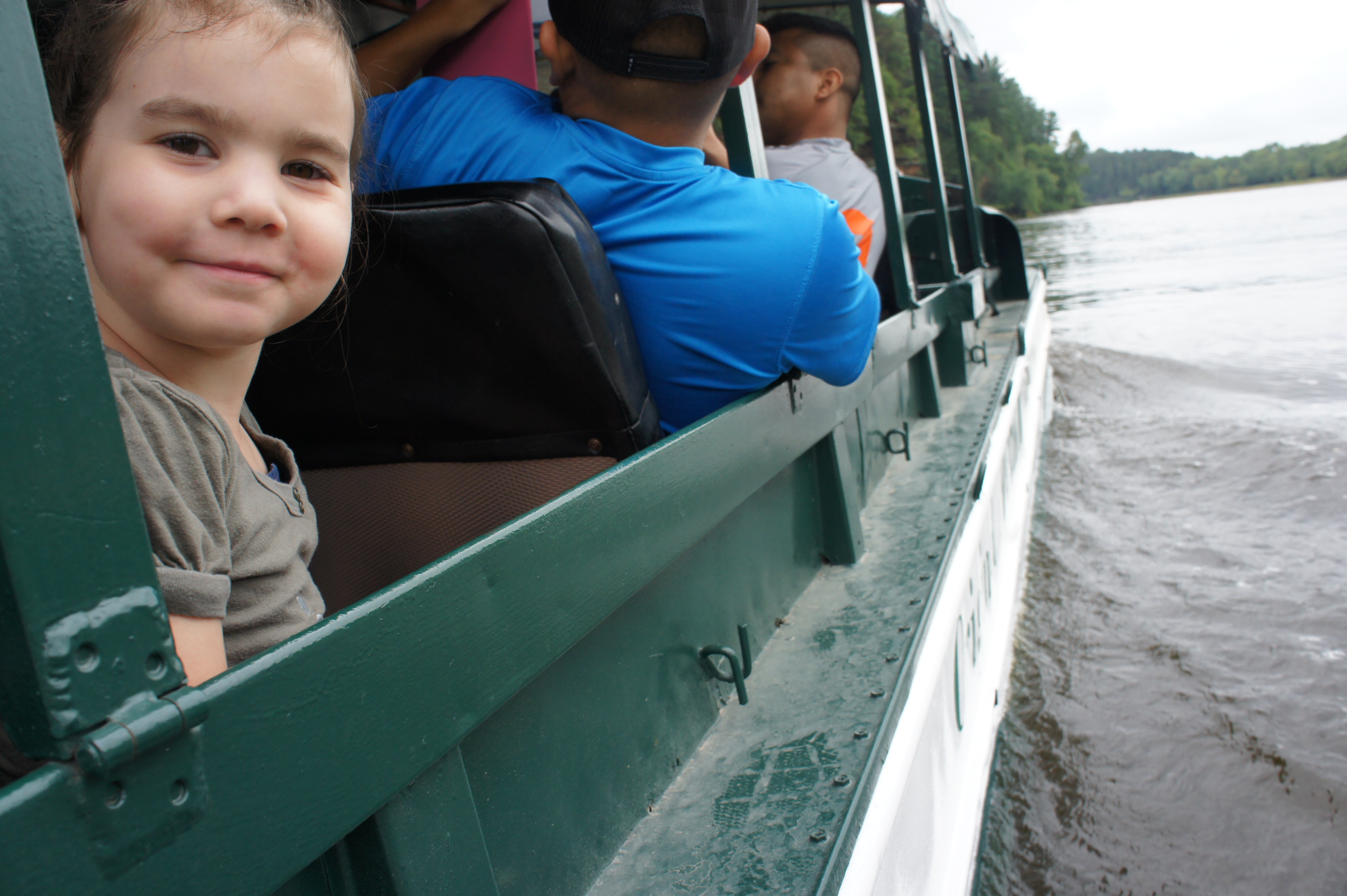 Then, we headed north into Wisconsin and docked for the night for today’s excursion with the original Wisconsin Duck rides. We climbed aboard the amphibious vehicle for a tour of the woods and down the Wisconsin River.